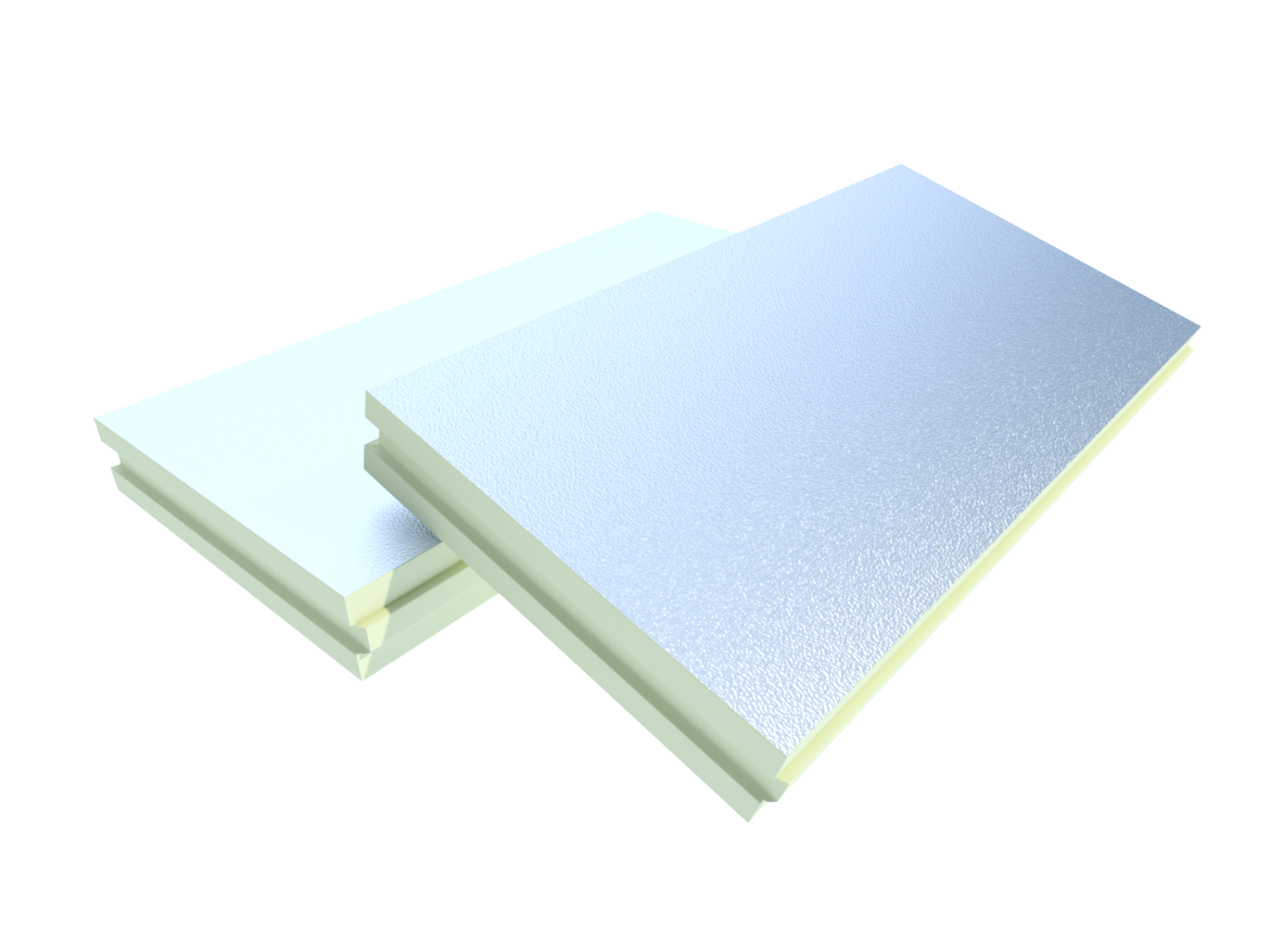 Wall A PRO FR is een isolatieplaat van hard polyurethaanschuim met een eenlaagse bekleding. Lambda waarde: 0.022 gele kern + 2 zijden ALU bekleed 4-zijden tand & groef in het formaat 1,20 m x 0,60 m