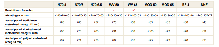 Overige formaten op aanvraag verkrijgbaar vanaf 2.000 m². Er kunnen mogelijke maatverschillen voorkomen bij combinaties van stenen gebakken uit verschillende soorten leem. Naargelang de bakserie kunnen de afmetingen verschillen.