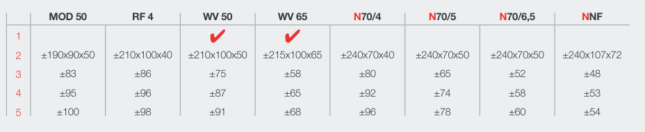 Zie onderstaande tabel. Overige formaten op aanvraag verkrijgbaar vanaf 2.000 m². Er kunnen mogelijke maatverschillen voorkomen bij combinaties van stenen gebakken uit verschillende soorten leem. Naargelang de bakserie kunnen de afmetingen verschillen.